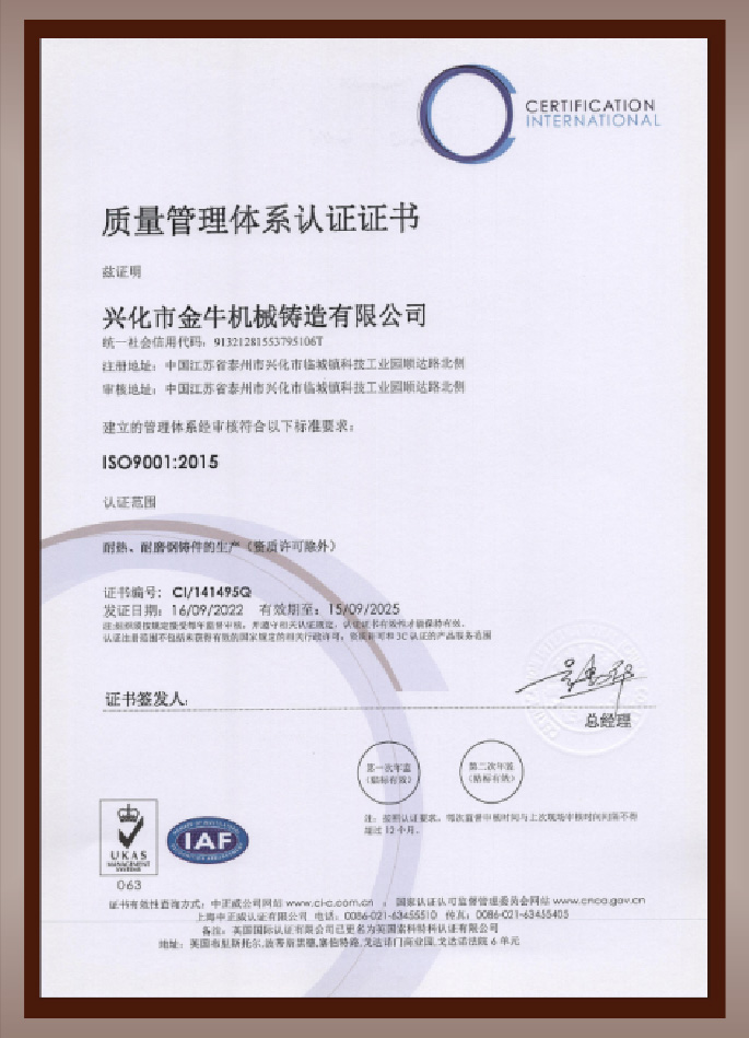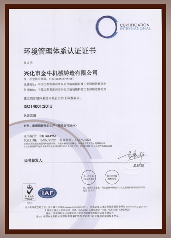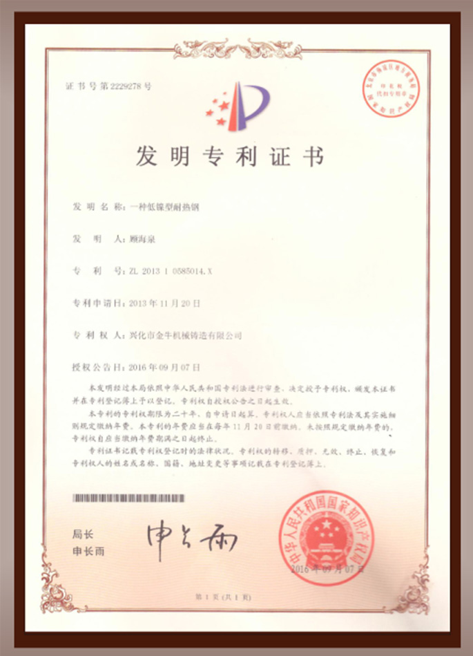 当社の登録資本は、2188百万元の登録資本と、合計12000平方メートルの5つの標準生産プラントを含む23100平方メートルの工場エリアを持っています。同社には、6人のシニアエンジニア、18人の中級の技術者、28人のマーケティング担当者を含む186人の従業員がいます。エンタープライズは、高度な生産機器と技術、強力な技術強度、完全なテストプロジェクト、および研究開発、フォームキャスティングの喪失、コーティングされた砂鋳造、シリカソルワックス損失精度鋳造、熱処理、鍛造、精密処理によるワンストップ生産能力を持っています。現在、年間生産能力は6000〜8000トンの高品質の熱耐性鋼であり、年間売上高は1億8,000万人民元です。当社は、最新のエンタープライズ管理システムを積極的に促進し、メインラインとして品質とコストで内部管理を継続的に強化し、ISO9001:2015国際品質管理システム認定とISO14001:2015環境管理システム認定に成功しました。